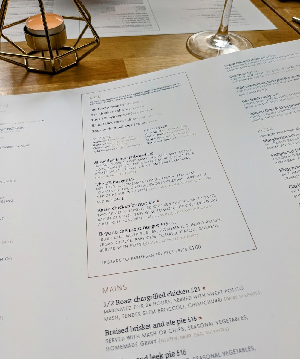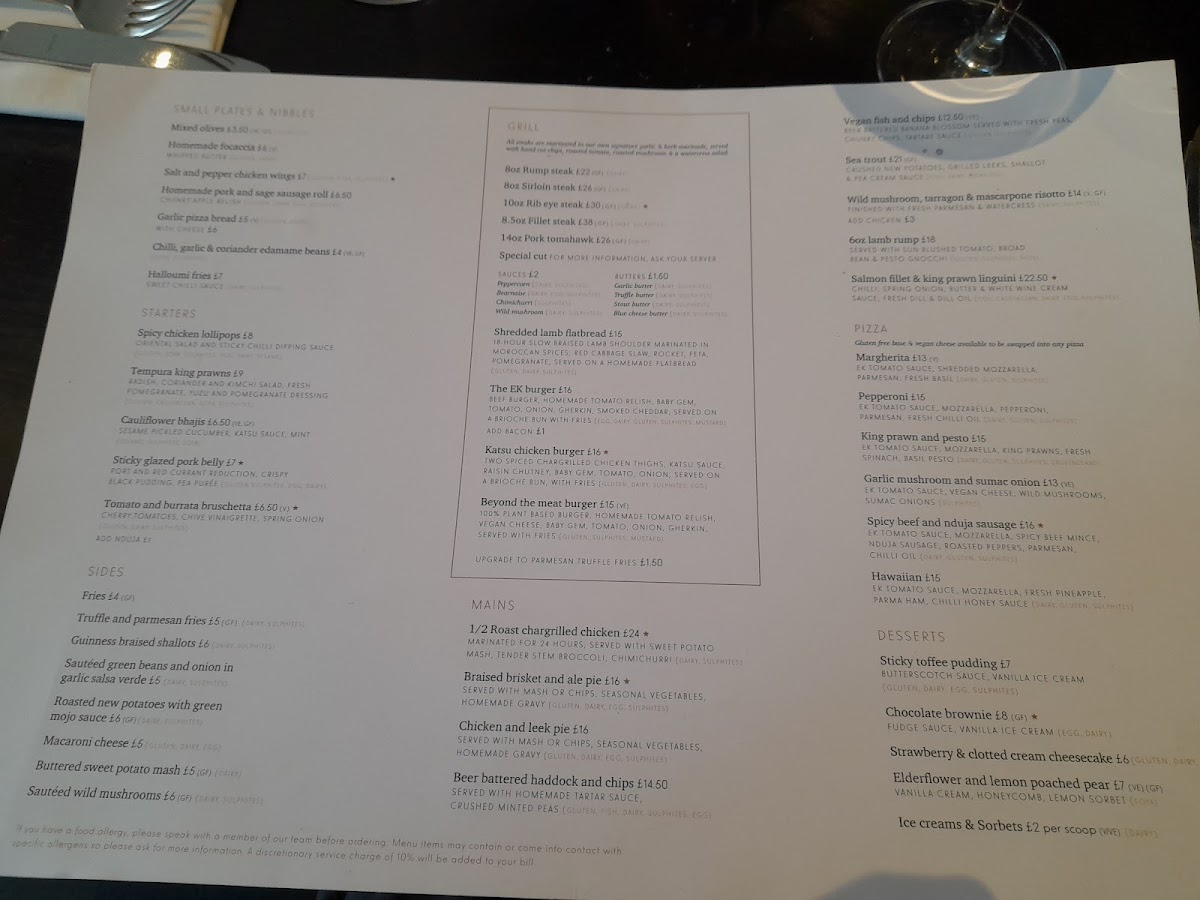 Review of Embankment Kitchen Restaurant & Bar Menu
